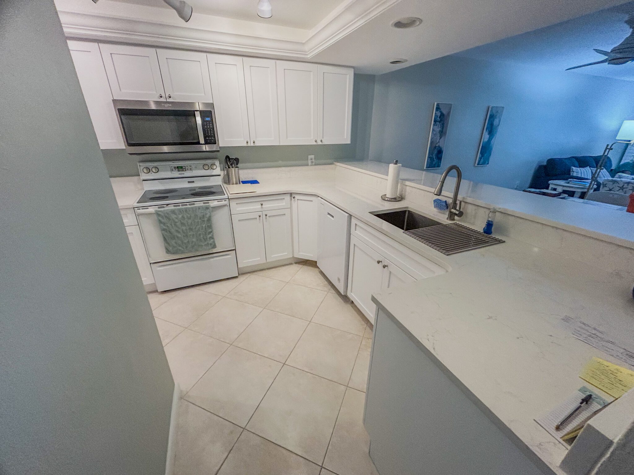 - Kitchen Transformation: Outdated cabinets were replaced with a sleek, custom “L”-shaped design featuring premium quartz countertops, a seamless matching backsplash, and an elegant under-mount sink. Appliances were carefully reinstalled in their original locations to maintain functionality.